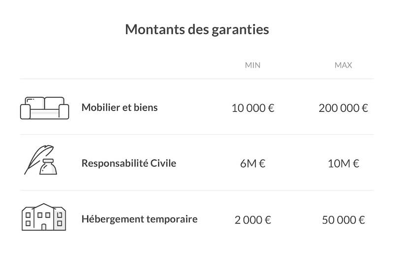 En plus des garanties incluses dans votre police, vous pourrez ajouter des garanties optionnelles en fonction de vos besoins. Le prix variera logiquement en fonction de ce que vous ajoutez aux garanties déjà incluses dans votre contrat.